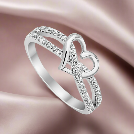 Tracy | Intertwined Heart Sparkle | Silver Ring